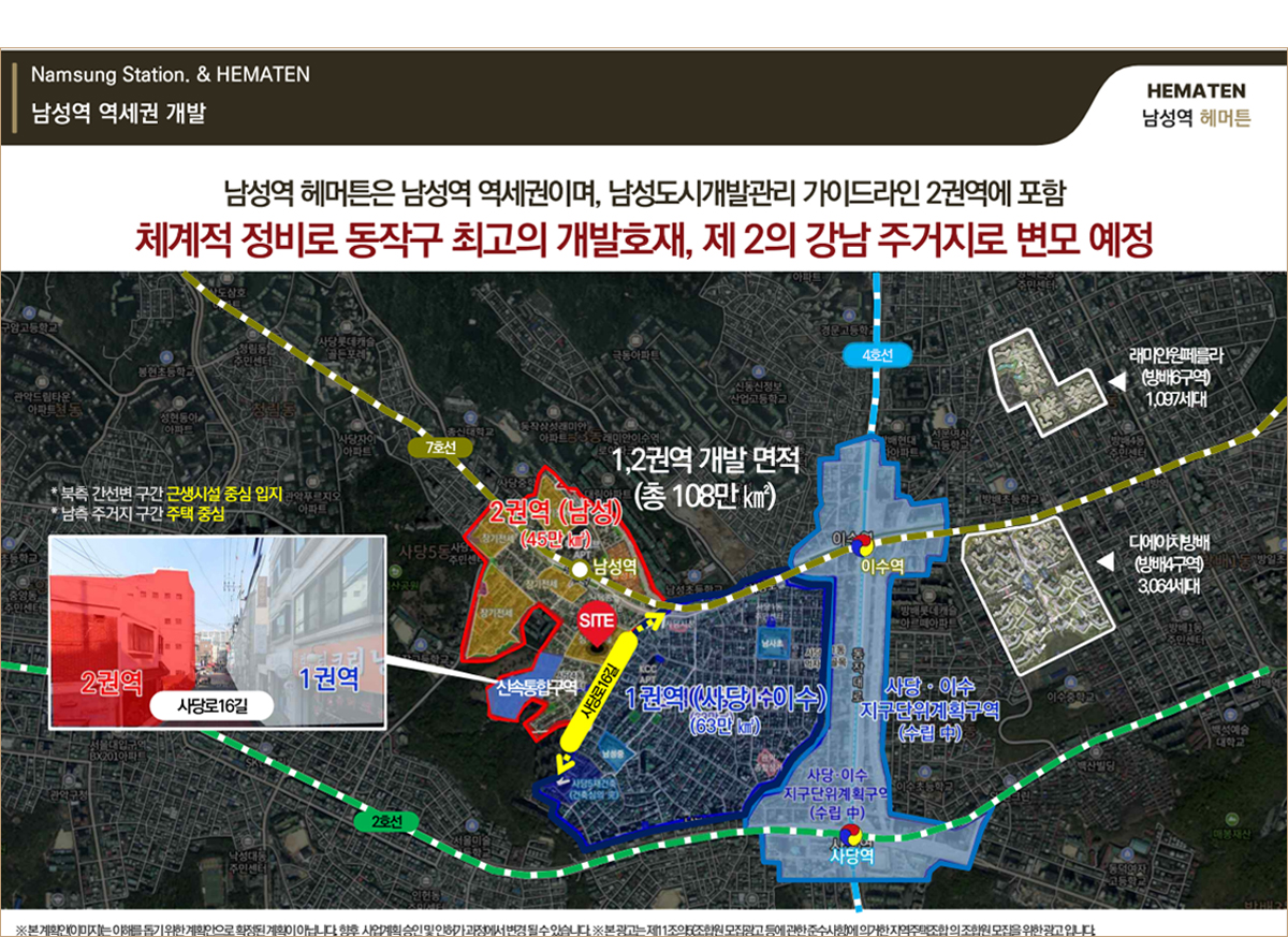 서울 동작구 남성역 인근에 위치하며, 도심 접근성과 생활 편의성이 모두 갖춰진 역세권 주거지역으로 알려져 있습니다. 지하철·버스 환승이 편리하고 주변 상권 이용도 수월한 편입니다.